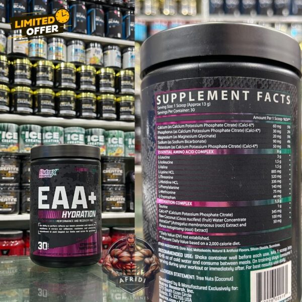 Order Now EAA+ Hydration by Nutrex Research in Pakistan from Afridi Supplements! Your trusted source in Pakistan for clean recovery and hydration support.