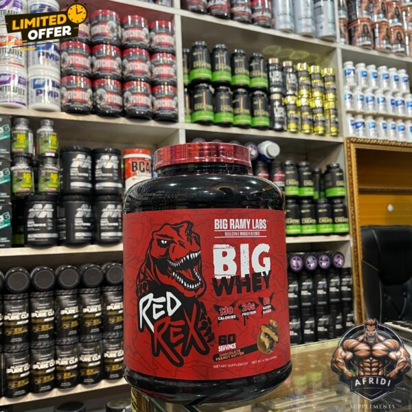 Order Now RED REX Big Whey by Big Ramy Labs in Pakistan from Afridi Supplements! Enjoy serious protein and mouth-watering flavor with every scoop.